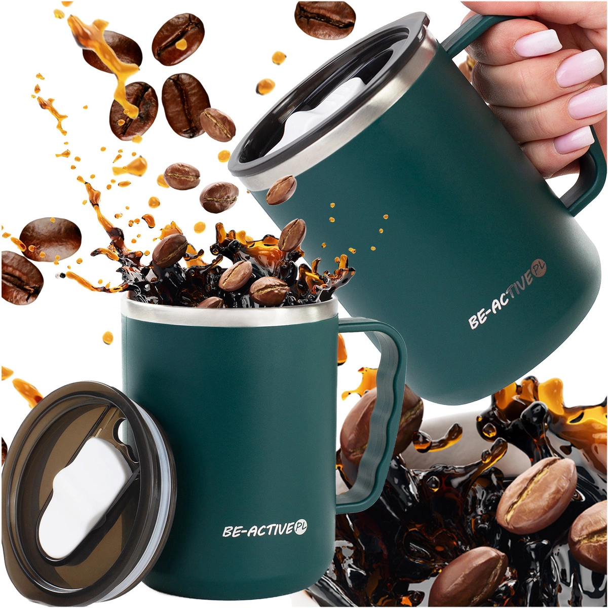 Praktyczny kształt i ergonomiczny uchwyt sprawiają, że nasz kubek termiczny BE-ACTIVE.PL jest wygodny w użytkowaniu i doskonale leży w dłoni. Dzięki temu możesz cieszyć się ulubionymi napojami bez względu na miejsce i sytuację.