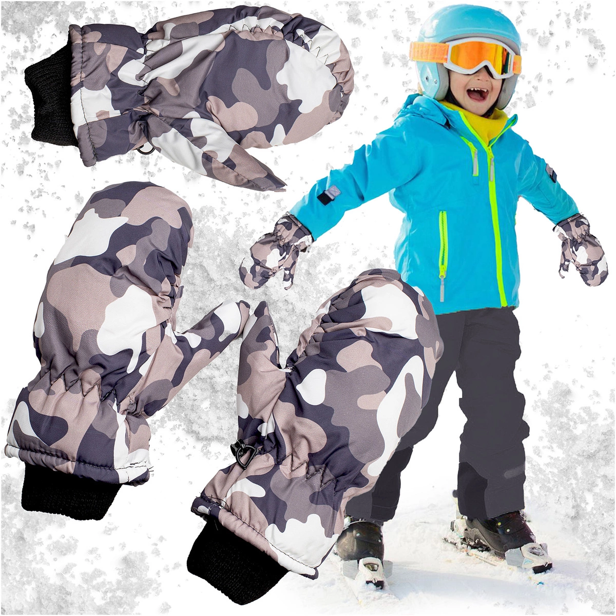 Rękawice zimowe dziecięce ciepłe rękawiczki narciarskie na zimę moro szare