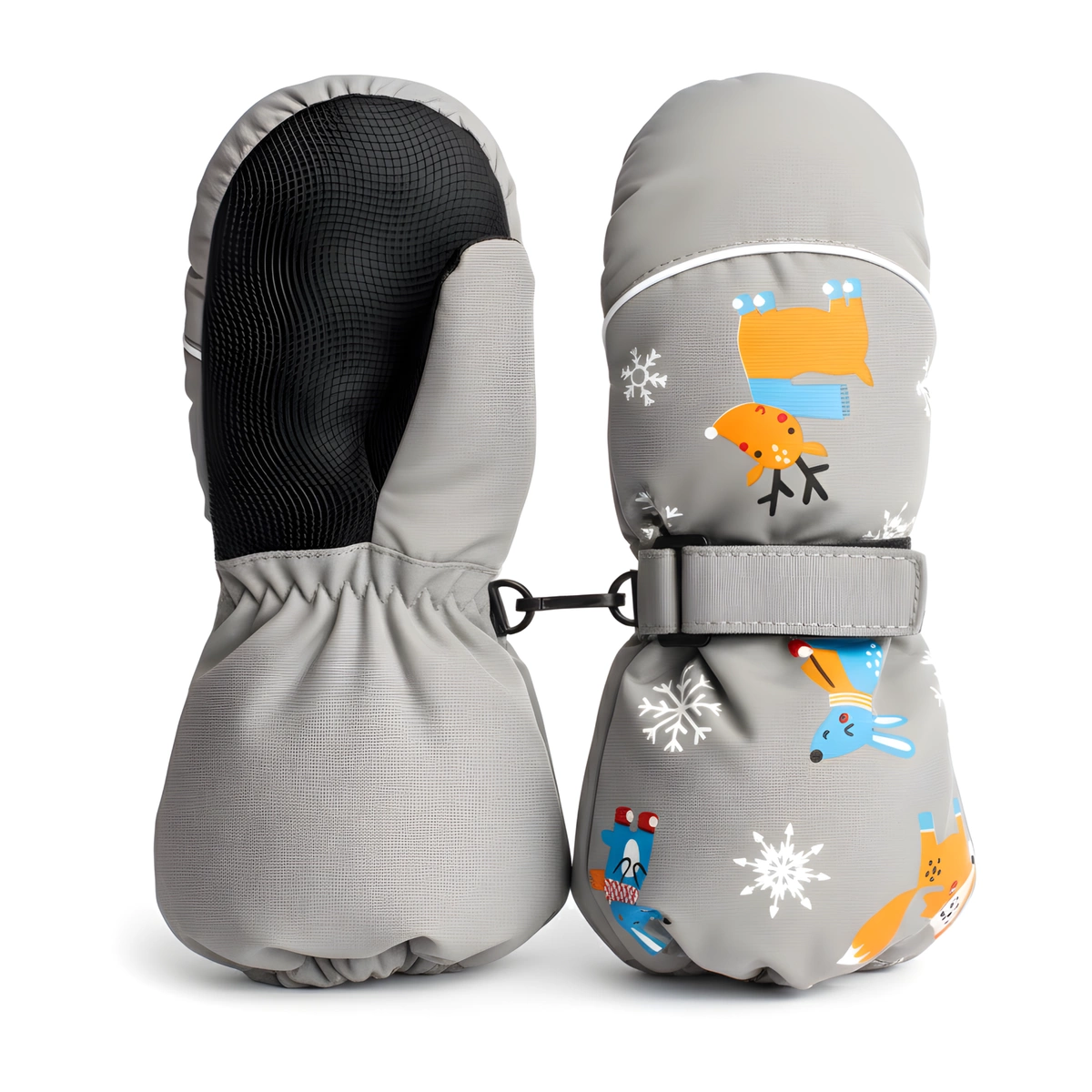 Rękawiczki zimowe jednopalczaste szare narciarskie wodoodporne rękawice dla dzieci