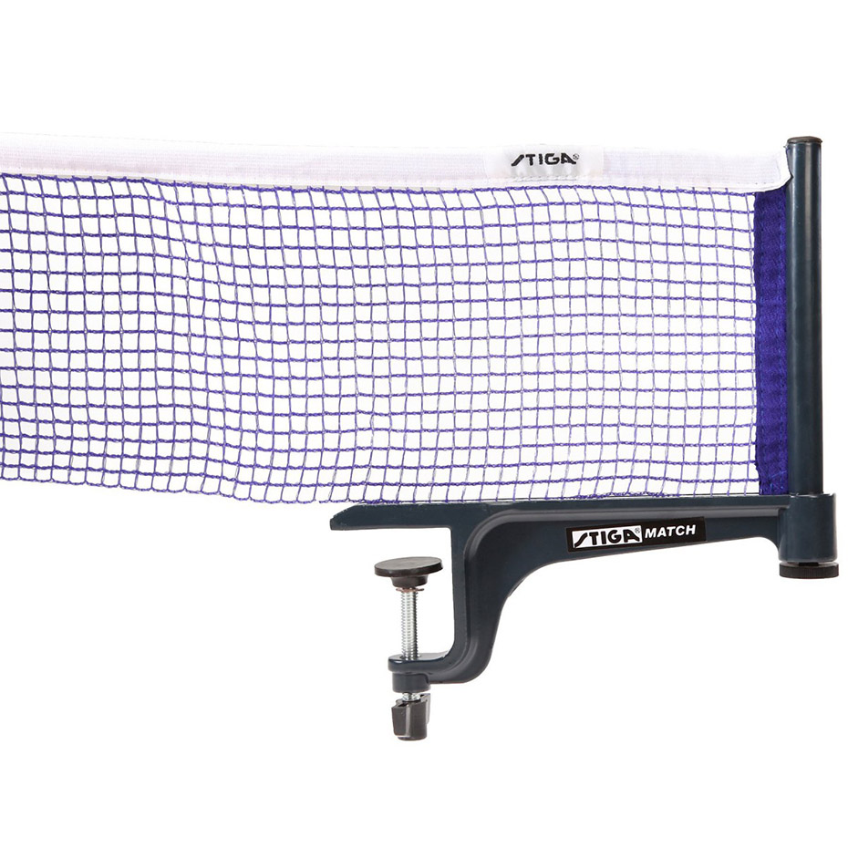 Siatka do ping ponga marki Stiga. Nylonowa siatka na stelażu posiada regulowane natężenie. Mocowanie za pomocą śrub z gumowymi podkładkami, co zapobiega niszczeniu powierzchni, do której jest zamontowana. Model pasuje na większość stołów.