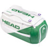 Torba tenisowa Head pozwoli łatwo przenosić i przechowywać do 3 rakiet bez pokrowców. Dwie komory otwierane za pomocą dwubiegunowych zamków błyskawicznych. Kieszonka na suwak. Regulowany pasek na ramię z nakładką. Podwójne rączki z ochraniaczem na rzep.