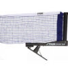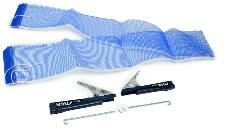 Siatka mocowana za pomocą wygodnego klipsa. Posiada uchwyty pasujące do większości stołów: hobby, półprofesjonalnych i profesjonalnych. Solidny, łatwy do zamocowania zestaw składający się z uchwytów do stołu do tenisa stołowego oraz siatki. Siatka nylonowa z metalowym stelażem.Regulowane naprężenie siatki. Długość siatki ok. 175 cm, wysokość ok. 15,5 cm.