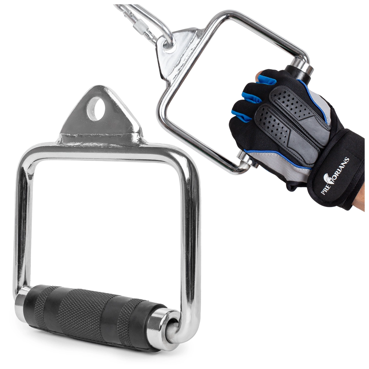 Ogumowana rękojeść umożliwia pewny i komfortowy chwyt. Dzięki temu możemy skupić się na dokładnym wykonaniu ćwiczenia bez obawy o to, że uchwyt może wyślizgnąć się z rąk. Wykonanie z wysokiej jakości stali daje możliwość treningu ze znacznym obciążeniem. Uchwyt jest także obrotowy, co pozwala zwiększyć zakres ruchu.